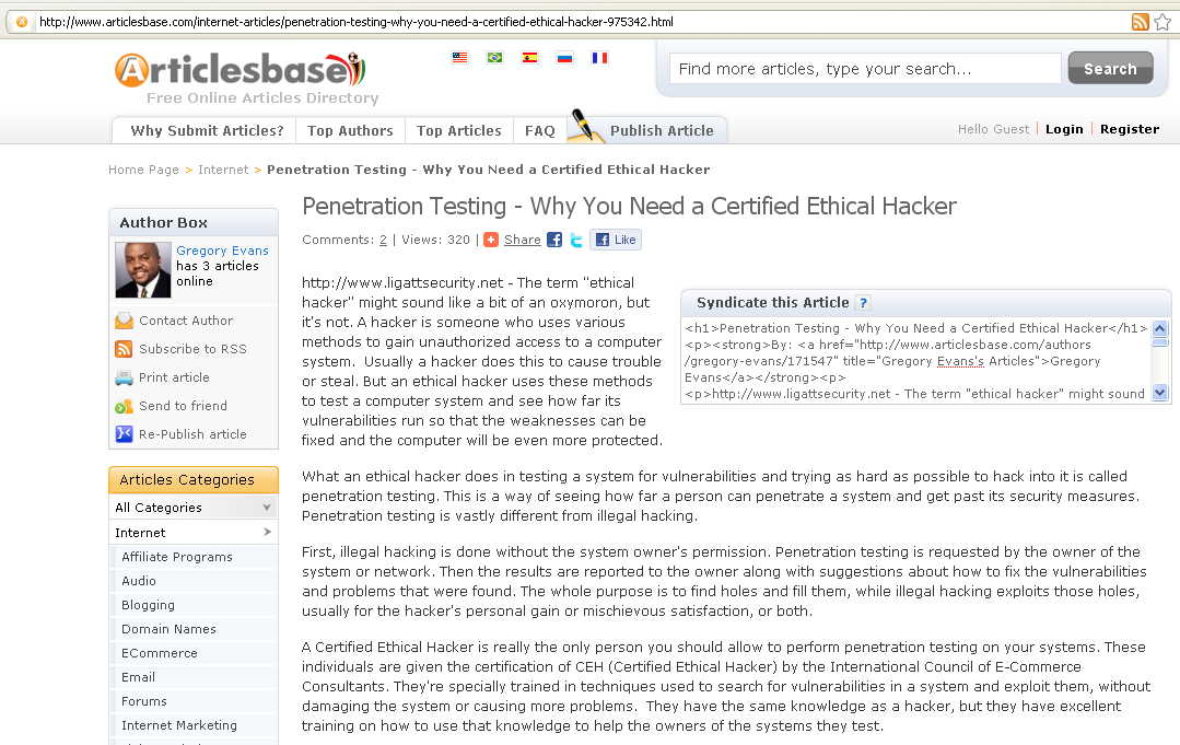 Examples of Evans' claim to be a CEH in biography and implication in an article he wrote: